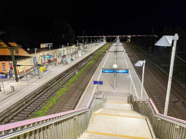 Buchholz in der Nordheide. Der Bahnhof in Buchholz erstrahlt seit Kurzem in der Dunkelheit in hellem Weiß. Das sanfte Orange der alten Tage ist verschwunden. Im August 2025 rüstete die Deutsche Bahn still und heimlich die komplette Beleuchtung auf energiesparende LED-Technik um.