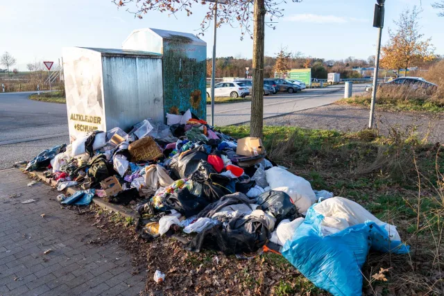 In der Mauerstraße sammelten Bürger innerhalb von drei Stunden fast 100 Euro, um einen Containerdienst zu bezahlen. Für 700 Euro soll eine Firma den illegal entsorgten Müll wegschaffen. Zwischenzeitlich wurde die Aktion wegen rechtlicher Probleme wieder gestoppt. Tüten, Säcke, Hosen, Teller und Tupperdosen türmen sich dort. Eigentlich ist es die Aufgabe vom Containeraufsteller oder je nach Entfernung vom Landkreis oder der Stadt.