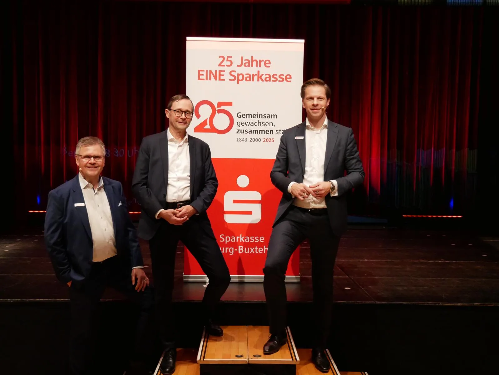 Frederik Schröder, Vorstandsmitglied der Sparkasse, und Cord Köster, Direktor Regionaler Vertrieb Privatkunden, begrüßten die Gäste. Der ausverkaufte Investmenttag sei der krönende Abschluss eines ereignisreichen Jubiläumsjahres, sagte Schröder. Unter dem Motto „25 Jahre EINE Sparkasse” feierte das Institut die Fusion der Kreissparkasse Harburg und Stadtsparkasse Buxtehude vom 1. Januar 2000.